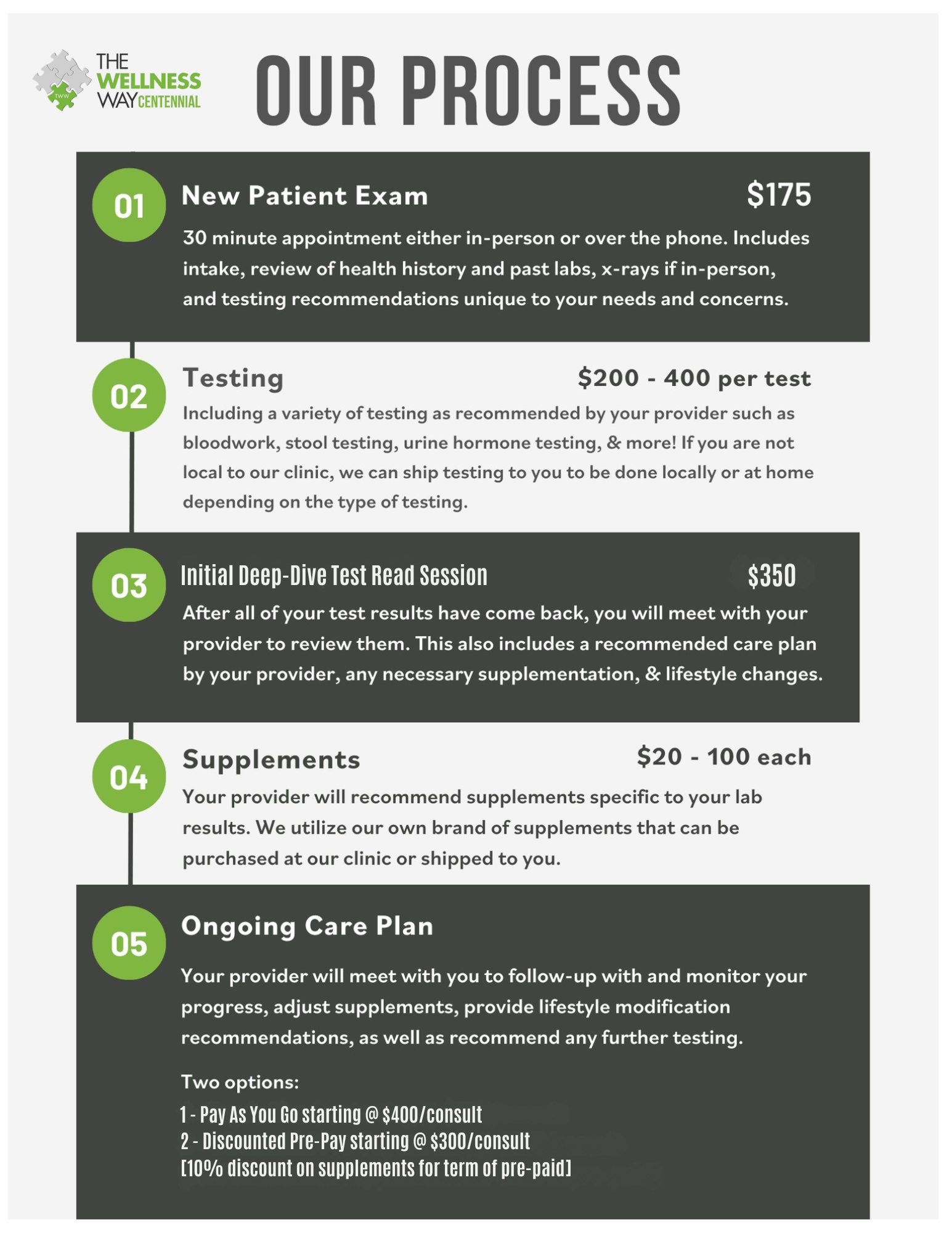 At The Wellness Way Centennial, our philosophy is founded on the belief that the human body was not designed for imbalance, and when properly supported, can restore its natural function. That’s why we don’t guess when addressing your health concerns.